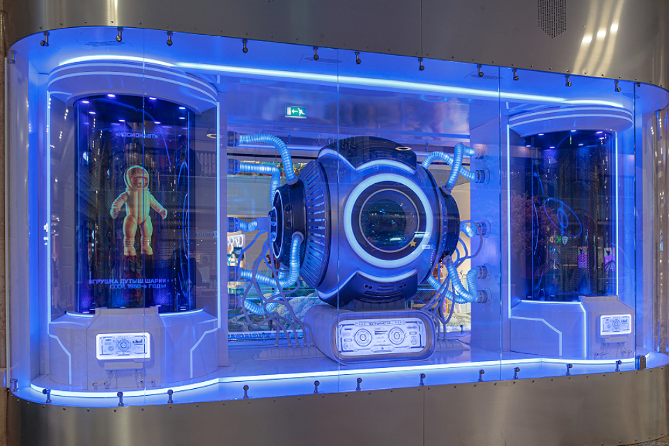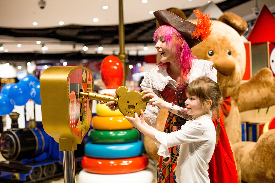 Двухэтажный магазин стал одним из самых больших в мире, но идти сюда нужно не только за игрушками. Пространство предлагает гостям множество развлечений — от красочных фото в волшебных локациях магазина до участия во всевозможных мастер-классах. Вход в магазин украшает интерактивная витрина в виде лаборатории времени, а вся территория разделена на тематические зоны, среди которых есть все для мальчиков, девочек и для новорожденных.
