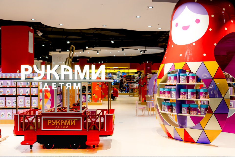Продукция из столицы художественных промыслов России, Нижнего Новгорода, обязательно придется по душе ценителям традиций. Корнер бренда «Руками. Детям» расположен на втором этаже “ЦДМ Игрушки” — он порадует вас расписными матрешками, свистульками и наборами для творчества, здесь есть даже деревянная детская мебель.