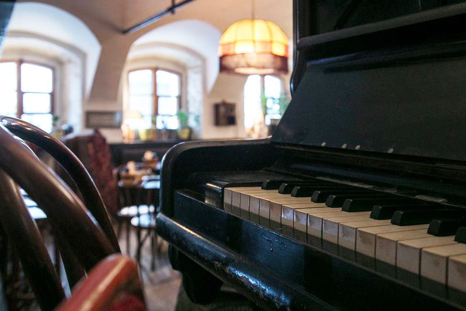 В меню пиано-бара по большей части традиционная русская и европейская кухни — борщ с тёплой ржаной булочкой, шакшука с томатами и зеленью, хумус с запечённым перцем, тёплой питой и свежими овощами и большой выбор вин.
