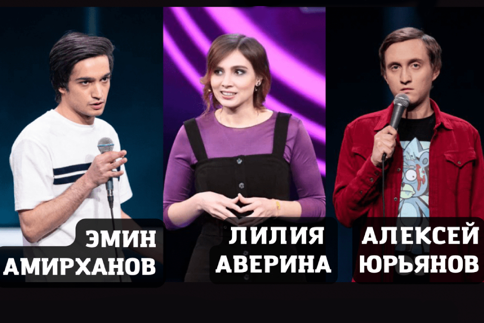 В 21.00 свое остроумие продемонстрируют: Алексей Юрьянов: финалист шоу «Открытый микрофон», победитель шоу Стэндап на Paramount Comedy, победитель Высшей Лиги КВН, Лилия Аверина – финалистка Comedy Battle, Рассмеши комика и Эмин Амирханов (Открытый микрофон).