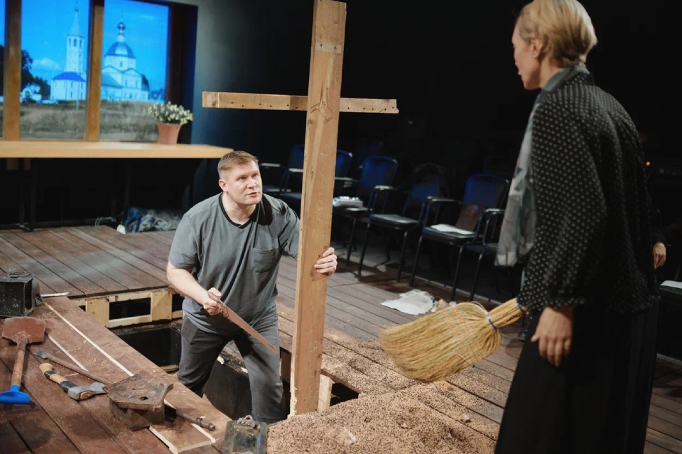 Кстати, богоискательская направленность будущего спектакля поначалу смутила некоторых участников. Чтобы развеять сомнения, в театр пригласили в качестве консультанта настоятеля одного из подмосковных храмов отца Николая. Он прочел пьесу, посетил читку, встретился с артистами и дал бесценные комментарии. А еще в спектакле участвует мужской ансамбль духовной музыки «СКИФ».