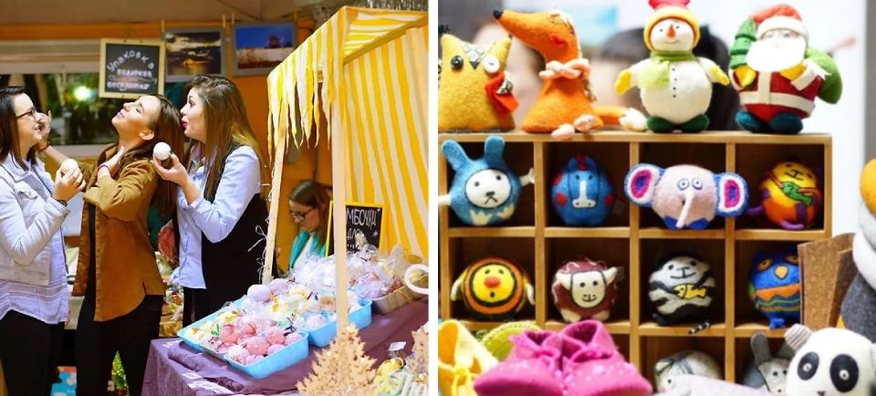 На первом этаже – ярмарка рукотворных шедевров. Тема – ретро Новый год. Мастера предложат игрушки в старинном стиле, безделушки для интерьера, аксессуары, натуральную косметику и вещи от российских дизайнеров.
