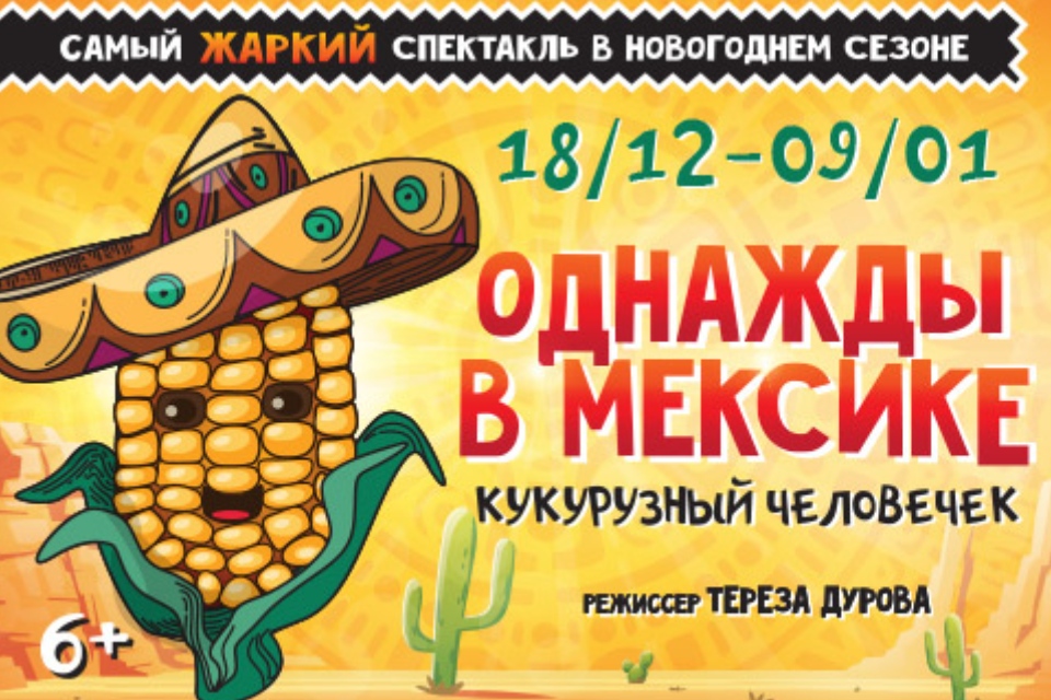 На этот раз зрителей ждет путешествие в Мексику. Где-то там, среди бескрайних кукурузных полей, затерялась деревушка Маисета. Ее жители любят свою землю, много трудятся, воспитывают детей и устраивают удивительные праздники. Особенно здесь отмечают пятнадцатилетие девочек – окончание детства и вступление во взрослую жизнь. Девочке дарят последнюю куклу, первые взрослые туфли и другие знаковые подарки. Но праздник главной героини спектакля «Кукурузный человечек» оказался испорчен: её младший братишка попал в историю, из которой без магии не выбраться… С 18 декабря спектакль проходит с интерактивной новогодней программой. Режиссер — Тереза Дурова. В ролях: Дарья Лукьяненко, Екатерина Прокопец, Анастасия Тюкова, Дарья Коршунова.
