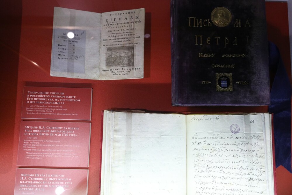 Первый раздел выставки рассказывает о личности императора, о главных событиях его жизни. Здесь впервые показывают разрядную книгу с записью о рождении и крещении царевича Петра, главные документы правления царя Федора Алексеевича – указ об отмене местничества и роспись русского войска 1680 г., учебную тетрадь Петра I. Можно изучить материалы о его бракосочетании с Евдокией Лопухиной, о рождении сыновей Алексея и Александра, почитать письмо императора к дочерям от второго брака и увидеть трогательный локон маленькой Елизаветы Петровны. Среди личных вещей – записные книжки Петра, кафтан и трость царевича Алексея Петровича. Тут же указ, написанный рукой царя, действующий и сейчас. 19 декабря 1699 года Петр постановил перенести празднование Нового года с 1 сентября на 1 января.