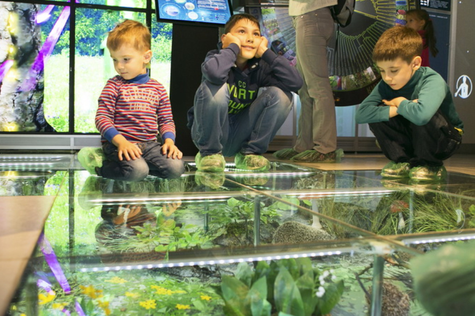 Совершенно удивительная часть Дарвиновского музея (сюда надо купить отдельный билет), где все можно трогать руками, исследовать и даже не стесняясь ползать по полу. Пол в этом помещении стеклянный, а под ним расположились обитатели различных зон – лиственного леса, хвойного, болотистой местности: растения, мхи, насекомые, змеи, мелкие животные.