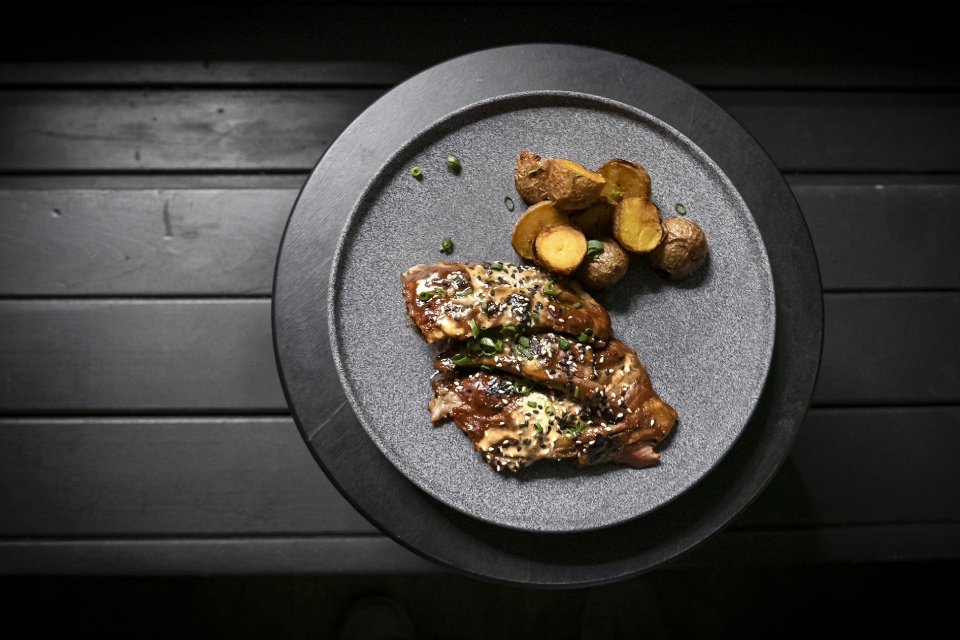 В нашей переписке Елена умолчала о свиных ребрышках с мини-картофелем (690). Ну понятно, она же у нас королева веганов, а тут вдруг — свинина, причем к разработке рецепта Савчук лично приложила руку (как, собственно, и к остальному меню). Зря, кстати, умолчала, ребра преотличнейшие. Также для мясоедов — тартар с дайконом (350), говяжьи митболы с пюре из батата (480), чили кон карне с копченой сметаной (430), бургер, вонтоны и три вида хот-догов.