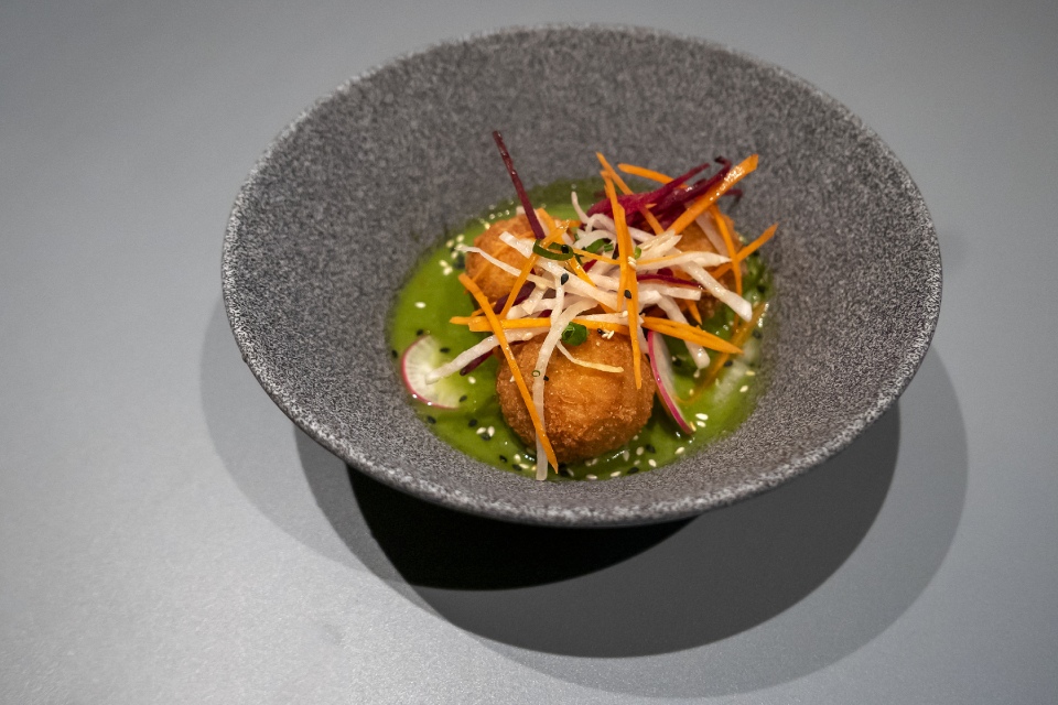 Мини-чебурек с крабом и креветкой — тоже презабавная штука, можно сразу парочку брать.