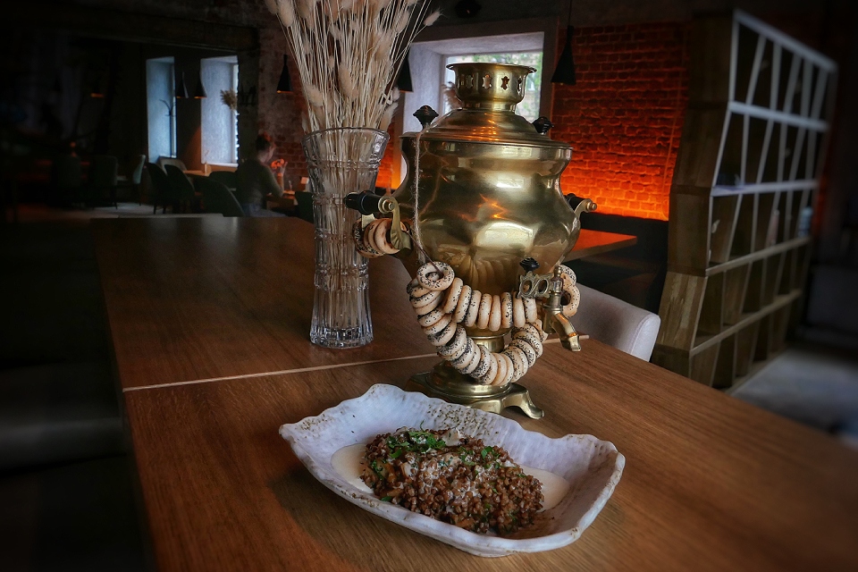 На двери «Перепела» прямо так и написано: «новый русский бар». Зашел проверить. Оказалось, чистая правда. Тут, конечно, «Русью пахнет» вовсю, но как-то без надрыва, весело. Начиная с названия, заканчивая меню и коктейльной картой. Есть вещи вполне естественные вроде перепелиных яиц с щучьей икрой, разносолов, холодца, сала с гренками или гречневых блинов с красной рыбой, есть абсолютно противоестественные, но все равно вкусные – это я про здешний хит, бутерброды со шпротами и киви. Кусочки киви тут, сами понимаете, выполняют роль долек лимона, так что вкус в целом узнаваемый, а за оригинальность – пятерка.