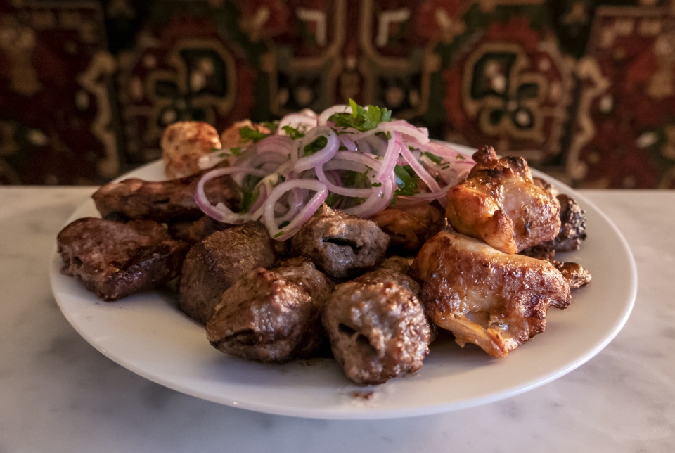 Последний пункт — «Шашлычная». Все уже знают, что главное блюдо тут — выдающийся люля-кебаб из баранины (450 р, есть куриная версия за 350). Шашлыки (свинина, баранина, курица, семга) тоже приготовлены в лучших традициях неброских стекляшек, куда ездили обедать знавшие толк в правильной мужской еде секретари райкомов, начальники отделов УВД и заведующие овощными базами. «Большой мангальный ансамбль» (2500 р) — это возможность попробовать все вышеперечисленное на одном блюде, если вы пришли компанией.