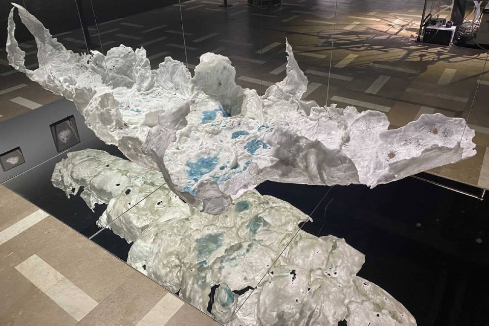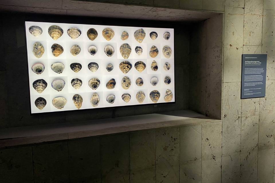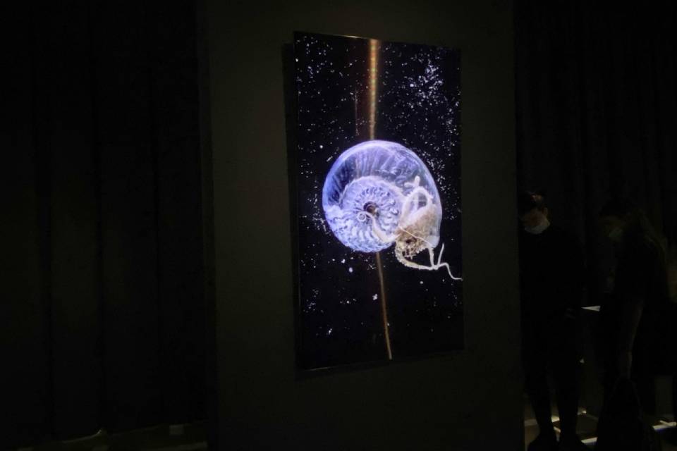 Первое, что встречает посетителей выставки — огромная коллекция ракушек, постоянно сменяющих друг друга. Это работа британской художницы Анны Ридлер. Во время отлива Темзы она собирала прибрежные ракушки и фотографировала их, стараясь запечатлеть историю реки. На основе своих фотографий Анна обучила искусственную нейронную сеть, сгенерировав бесконечное количество ракушек.