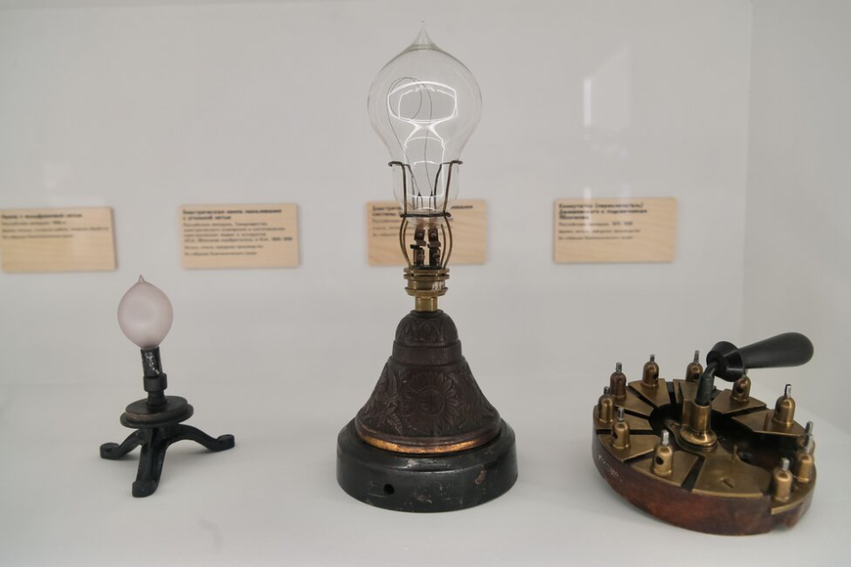 Чего только тут ни встретишь: огромный, словно из Голливуда, кинопроекционный аппарат производства 1957 года завода «Кинап», единственный сохранившийся в мире экземпляр апланатического зеркала 1888-1889-х для демонстрации оптических свойств параболических поверхностей (этой огромной линзой можно и металл расплавить). Отечественный велосипед 1869 года модели «Костотряс» лишь с намеками на систему амортизации, но она все же имелась и проходила под сидением. Впрочем, судя по виду велика, название модели абсолютно оправданное.