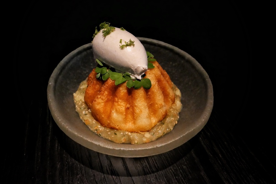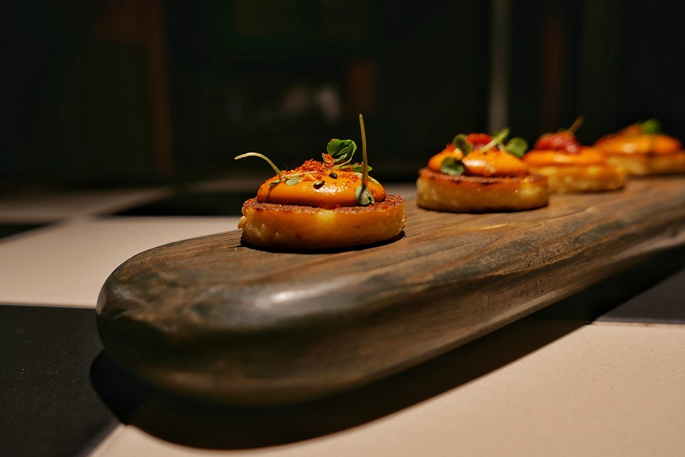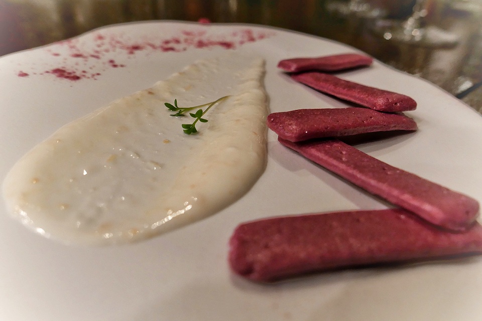 Интересные тапас. Лучшие – с соусом ромеско и вяленым черри на крохотных шайбах из поленты. Крем из жареной корюшки на бриоши тоже ничего. Под бутылку вина на одних этих тапасах вполне можно продержаться (кстати, винная карта тут интересная). Запеченный баклажан подают со страчателлой и томатно-хреновым соусом. Супов всего два: кислые щи с куриной грудкой и лакса с аргентинскими (почему-то) креветками.