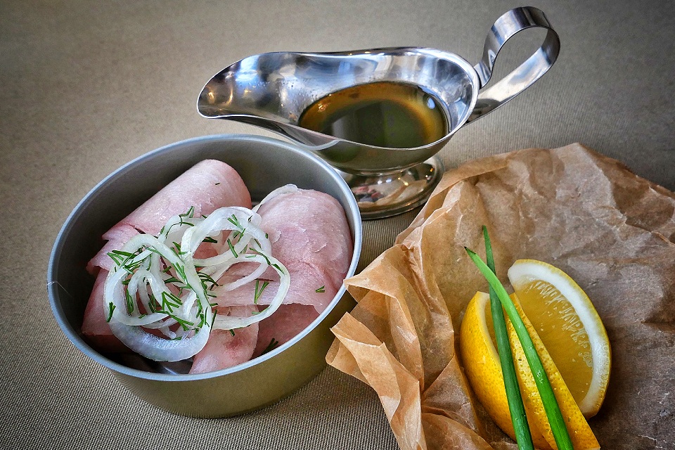 В ресторанах угорь будет вам попадаться в разных видах – от кусочков филе до паштетов, ешьте на здоровье. Еще один предмет гордости – строганина из пеламиды. С одной стороны, это и правда строганина – тонкие лепестки замороженной рыбы. С другой – уж больно непривычно видеть это не где-нибудь на крайнем севере, да еще в таком непривычном сопровождении: вместо смеси соли и черного перца – оливковое масло с бальзамиком и лимонный сок. По крайней мере, так нам была преподнесена эта строганина в отеле «Усадьба», а там знают толк в местных специалитетах. Кусочки маринованной балтийской сельди, например, подносят на крохотных картофельных драниках. И рядом как бы невзначай ставят рюмочку чего-нибудь крепкого. Очень душевно.