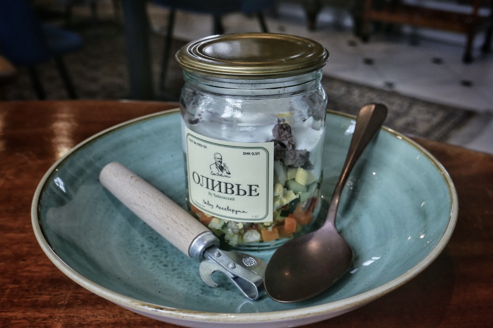 От других ресторанов русской кухни «Чайковский» отличается ироничным отношением к Чайковскому (на меню, например, Петр Ильич изображен с рюмкой чего-то явно не безалкогольного), еде и общепринятым представлениям о том, каким должен быть ресторан русской кухни. Во-первых, еда тут не то чтобы совсем уж классическая русская, а с изрядными вкраплениями советской (оливье, мимоза и пр.). Но и тут, как выясняется, есть место доброй шутке — оливье можно брать хотя бы только из-за подачи.