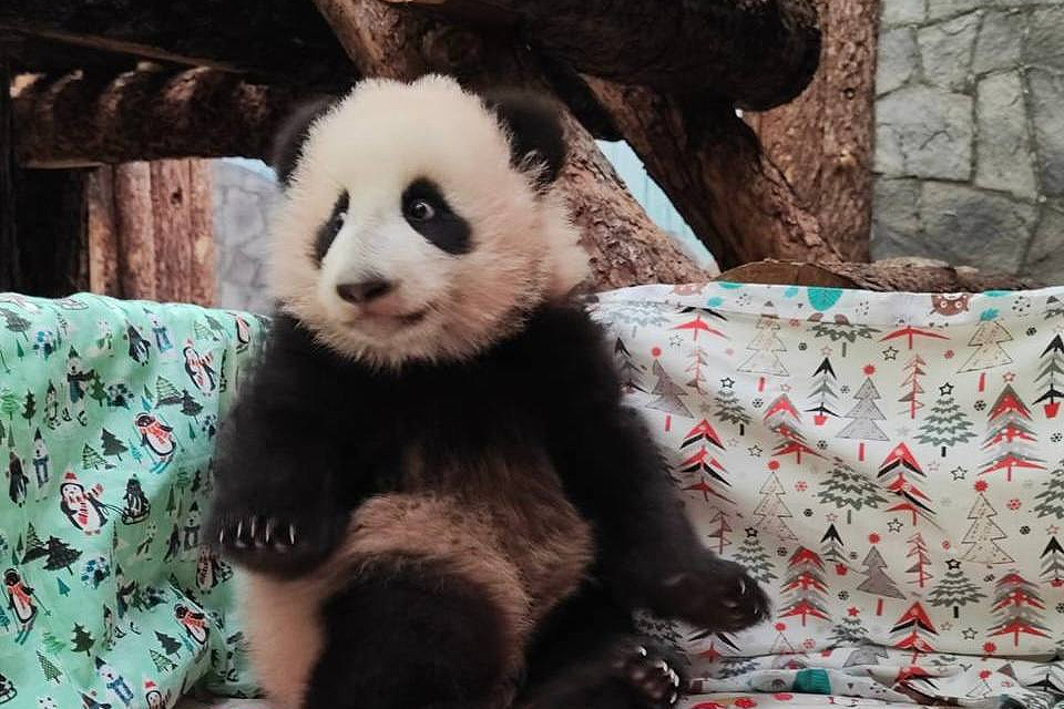 В начале декабря панда начала ползать. В вольере создали специальное тёплое покрытие пола, оно обеспечивает нужное сцепление и идеально подходит для малышей.