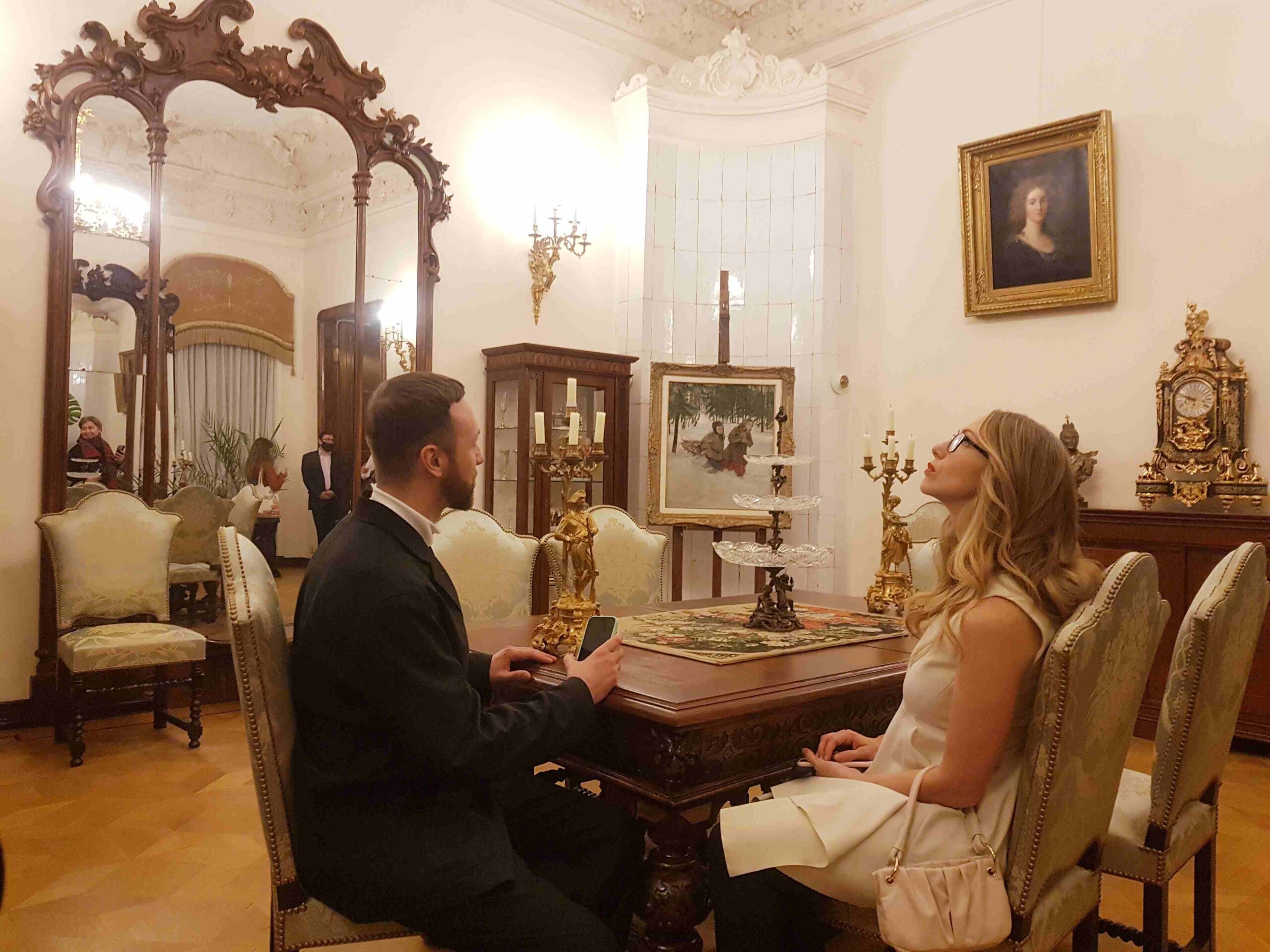 Оказавшись внутри, изумляешься роскошными интерьерами. В особняке прекрасный ремонт, старинная мебель, изысканные зеркала и вазы. А какая история у этого дома!