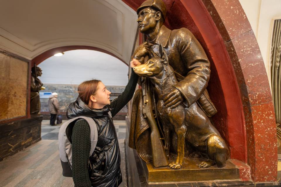 Самое знаменитое собрание скульптур московского метро находится на «Площади Революции». Здесь более 70 бронзовых фигур, часть из которых повторяются по несколько раз. Поскольку они размещены в арках, то под размер этих сводов все изваяния сделали сидящими или стоящими на коленях. У москвичей и туристов станция стала местом исполнения желаний. Достаточно потереть определенную скульптуру и загадать сокровенное. Например, потрогать нос овчарки пограничника — для успешной сдачи экзаменов, гребень петуха около фигуры колхозницы — к деньгам, туфельку на правой ноге студентки с книгой — к счастью в личной жизни.