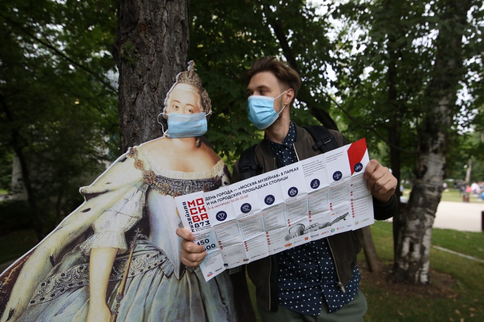 В субботу, 5 сентября, в Москве начали отмечать 873-летие города. Праздничная программа продолжится и в воскресенье. В 2020 году День города проходит в особом режиме. Традиционных масштабных гуляний не было. Причину долго объяснять не нужно — эпидемия. И хоть сегодня ежедневный прирост заболевших почти в десять раз меньше, чем на пике ковидной пандемии, власти приняли осторожное решение. Единой площадки для празднования годовщины не было. Вместо этого в разных частях Москвы главные зоны отдыха украсили в фирменный стиль и провели тематические мероприятия. Лейтмотивом торжества стала «Музейная Москва». На площадках горожан ждали арт-объекты, выставки, лекции, экскурсии.