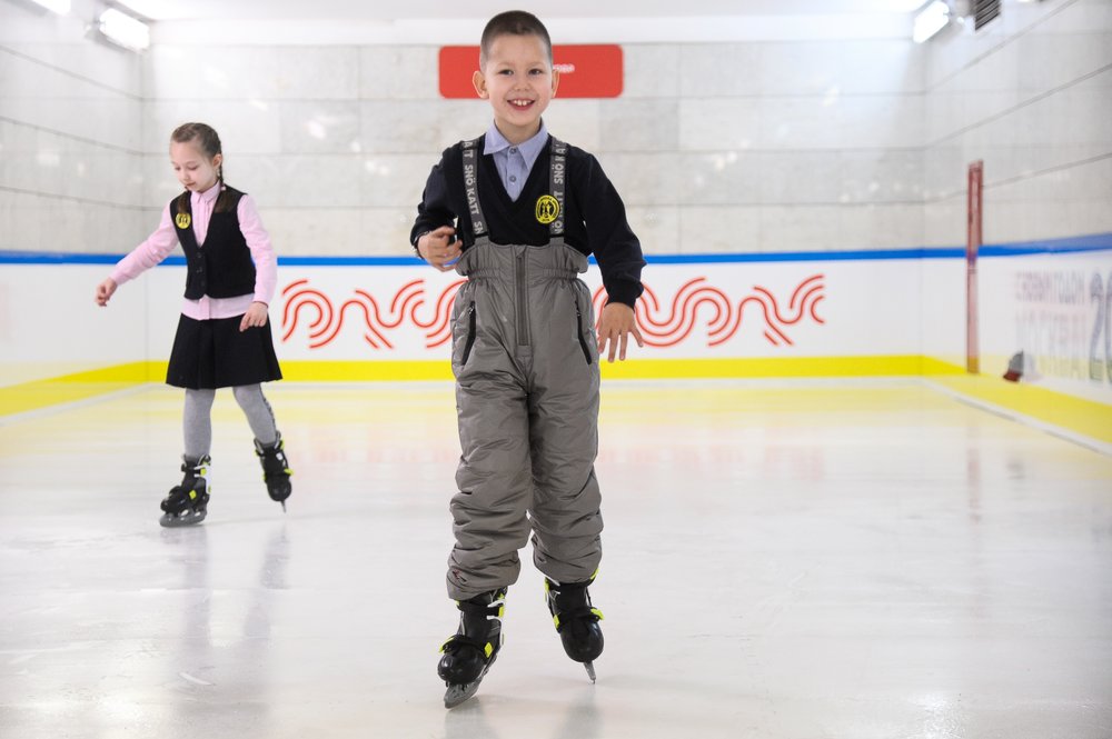 В торговом центре «Авиапарк» круглый год работает каток «Мега Айс». Там проводятся и индивидуальные тренировки, и массовые катания. Кроме того, можно попасть на различные праздничные мероприятия и выступления аниматоров. Работает прокат коньков, также гости могут взять ледовых помощников для детей (пингвины, котики и олени).