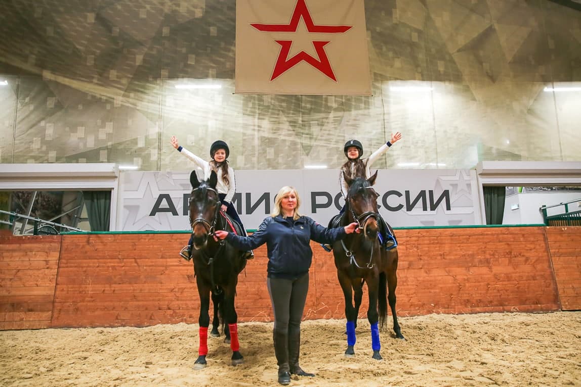 На территории парка «Патриот» рядом с военно-историческим комплексом «Партизанская деревня» расположен конно-спортивный кластер. Здесь все желающие могут покататься на старинном фаэтоне, на лошадях в открытых и закрытых манежах, площади которых составляют 1 231 кв. метров и 850 кв. метров соответственно. Занятия проводят опытные тренеры, которые сначала проведут инструктаж по технике безопасности. Кроме занятий по верховой езде посетители могут увидеть выступления знаменитого конного театра «Каскадёр», который по праву считается одним из лучших видов российского циркового искусства.
