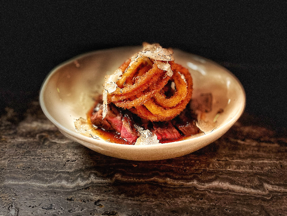 Во-первых, стейк рибай с луковыми кольцами (1200 р за 100 гр). У него единственный недостаток: эти самые кольца едва ли не вкуснее мяса (и уж точно на их фоне совершенно теряется трюфельная стружка). А кто в Москве главный спец по луковым кольцам? Правильно: Руслан Поляков, который в Gentle отвечает за кухню. Надо сказать, ловко устроился человек: основное место работы — Remy Kitchen & Bakery — буквально через дорогу, очень удобно (хотя теперь непонятно, какое из этих двух мест работы главное).