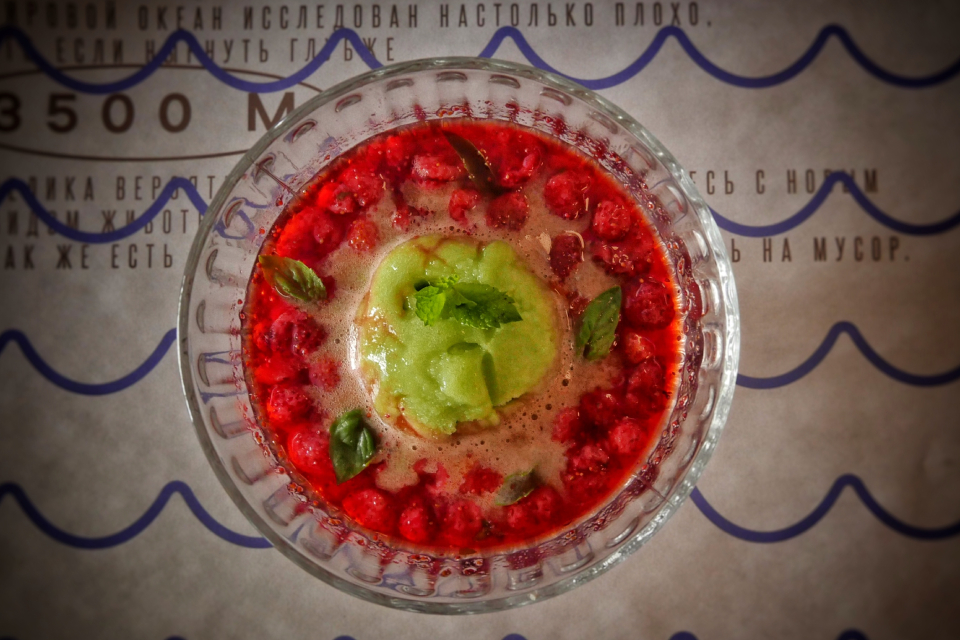 Но поразительная вещь: в «Океане» этот самый жареный минтай с банальным картофельным пюре (350 р) вдруг оказывается вкусен необыкновенно и буквально выжимает ностальгическую слезу. И печень трески на эти же чувства давит, и салат мимоза с неркой, и форшмак. А балтийская килька на гренках с маринованным луком — это вообще повод выделить в кафе небольшую зону под рюмочную со стоячими местами. Очень уж правильные бутербродики, прямо как на машине времени из 70-х приехали. Хотя бы ради всего этого сюда стоит зайти людям 60+ и детей с собой прихватить. В воспитательных целях. Оценят ли дети — большой вопрос, но, надо сказать, тут далеко не все строится на тоске по славному советскому прошлому.