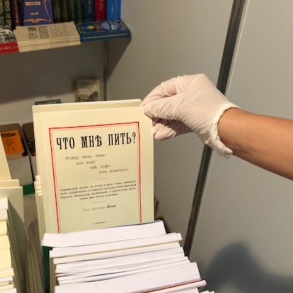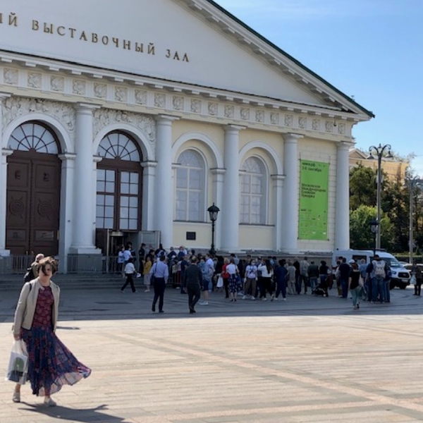 Чтобы попасть на Московскую книжную ярмарку в 2020 году, необходимо выстоять небольшую шуструю очередь минут на 15, надеть и перчатки, и маску. Без перчаток не пустят, даже не надейтесь. Нигде поблизости купить их нельзя. Очередь кооперируется: перчатки делят пополам, а «голую» руку прячут в карман. Внутри посетителям измеряют температуру, провожают через рамку металлодетектора — и все! Можно наслаждаться книгами. Опытные люди приходят на выставку с сумками-тележками. Свою продукцию представляют 300 издательств и, действительно, от покупок удержаться трудно, хоть цены на большинство книг совсем не отличаются от магазинных.