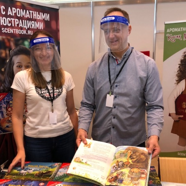 На первом этаже кроме книг, есть еще и сцена, на которой проходят дискуссии. Чтобы гостям было удобно, на экране пишу, кто и про что говорит. На втором этаже расположились большие издательства. В целом здесь как-то светлее и веселее и…. душистее. И это не обман обоняния! Издательство Scentbook предлагает посетителям ММКЯ книги с ароматами. Первая такая книга появилась в Швейцарии. Это была история про козлика. Ее и сейчас можно купить в издательстве, но теперь тут огромное разнообразие! В книгах пахучие страницы. Можно просто понюхать, а можно потереть пальцем. Нарисованный базилик, лаванда, луг пахнут, как настоящие. Тут даже умудрились передать запах козлика! Он, конечно, не всем нравится. Зато точно передает деревенский дух. Ароматы в книжках натуральные, говорят, даже аллергикам можно такие книжки.