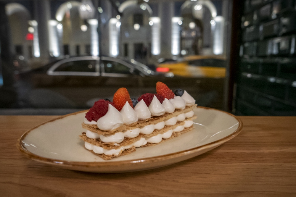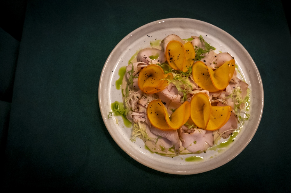 Есть меню основное, а есть осеннее. Там обратите внимание на пастрами из индейки с хурмой (490) и хрустящий баклажан с томатами и страчателлой (550). Наверняка захотите попробовать и пасту карамелли с белыми грибами и уткой под муссом из пармезана (650), кто ж не любит эти оранжевые «конфетки» из теста? Вот только тесто тут толстовато, надо бы с этим побороться.