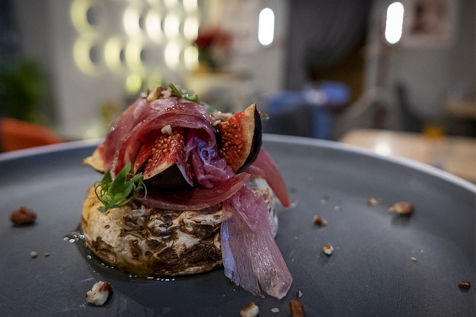 Запеченный камамбер с инжиром и пармской ветчиной — тоже довольно изящно сработанная штука. Жаль, не все смогут это оценить — цена в 980 р отпугнет.