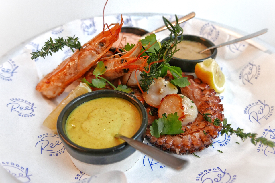 Рыбное бистро Reef на улице Красина называют флагманским. Потому что одно с таким же названием уже есть на Шаболовке, а еще несколько собираются открыть. Собственно, уже по названи понятно, что основная еда тут — морепродукты (преимущественно дальневосточного происхождения). Любишь raw — получай, татаки — не проблема, захотелось, допустим, соте из вонголе (670) или мидий (730) — вуаля (мидии, кстати, в чудо-соусе типа том-ям, хорошо, что прилагается большой кусок хлеба, удобно макать).