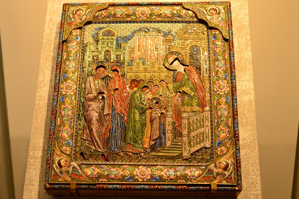 Сегодня атрибуированные произведения ювелира — большая редкость. Даже в музеях Кремля их всего десять. Для нынешней выставки работы Рюкерта собирали по всему миру. В том числе, один из кубков прилетел из музея Виктории и Альберта. Особое место среди экспонатов занимает икона в окладе Введение Богоматери во храм. По легенде, икона необыкновенной красоты была подарена Николаем Вторым супруге, но до долгое время она считалась утраченной.