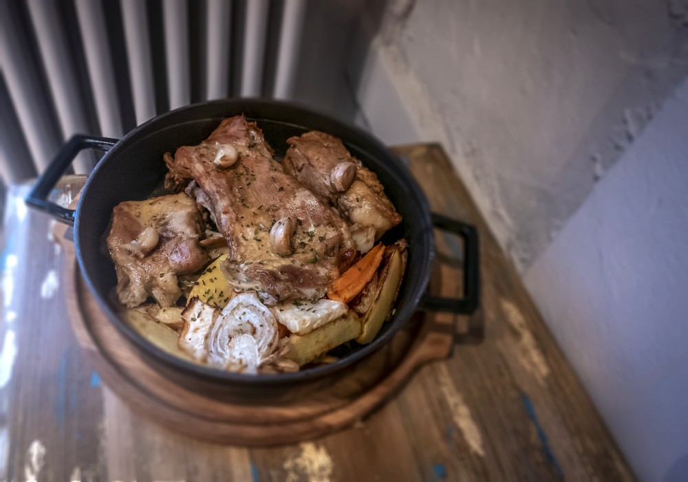 Но хит — это, конечно, молочный козленок, запеченный на сковороде с травами, чесноком и картофелем. За 990 р вы получите порцию на одного едока, за 2100 — на двоих, но нужно уточнить: на двоих сильно голодных. При этом надо еще оставить силы на десерт, тут отличный французский тост с мороженым (420) — ну-ка угадайте, из какого молока.