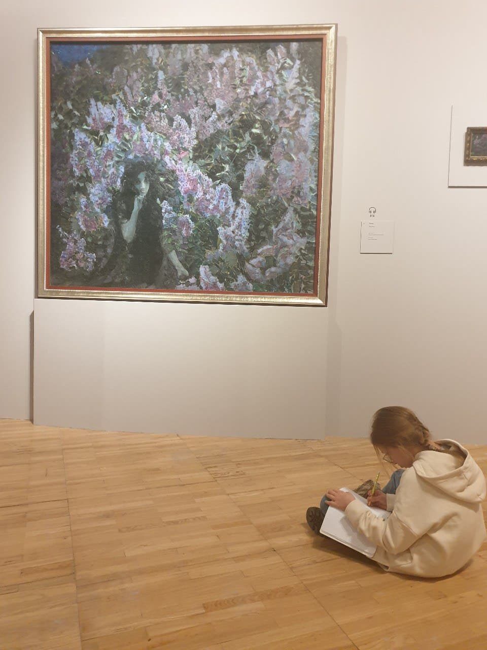 Пытаясь найти ответы, я бродила по залам туда и обратно несколько раз. И, в очередной раз проходя мимо знаменитых Сиреней, заметила сидящую на полу перед полотном маленькую девочку. Она старательно малевала в тетрадке, пытаясь срисовать картину.