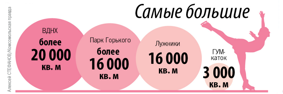Парк Горького Где: ул. Крымский Вал, 9. Ст. м. «Октябрьская». Когда: с 10.00 до 23.00, выходной — понедельник. Стоимость: от 250 до 600 руб., в зависимости от дня недели. Прокат коньков: 250 руб./час. Купить билет