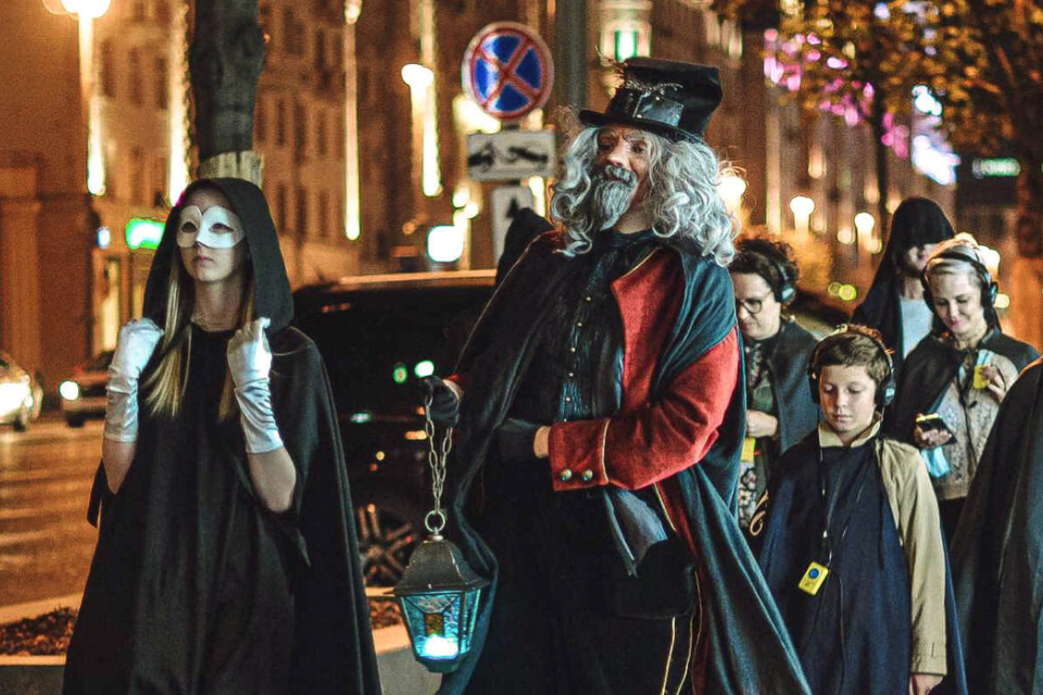 Участники экскурсии-спектакля будут знакомиться с Москвой в совершенно непривычной для себя форме. Вас облачат в плащи-мантии, предоставят аудиогид и наушники — в них голосами профессиональных актеров зазвучит главный спектакль. Также вы услышите удивительные истории о «Театральной» Москве от Фонарщика Фаролеро. Ночные огни столицы, актеры в масках, неожиданные звуки, запахи и вкусы, странные находки, элементы шоу и сюрпризы. Город раскроется по-новому. Вы окунетесь в настоящую сказку на улицах старинной Москвы.