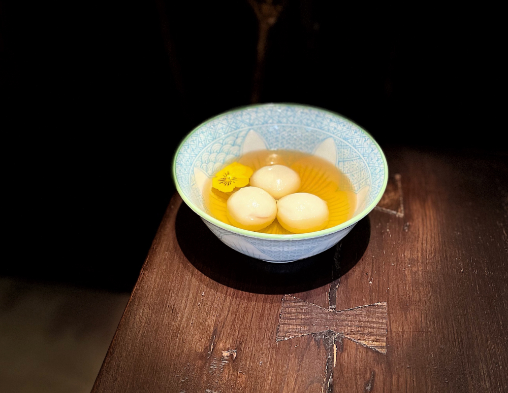 А еще в Lotus Room появился новый десерт: рисовые шарики с начинкой из сладкой бобовой пасты, плавающие в жасминовом чае. Не всем понравится, но я такие штуки обожаю.
