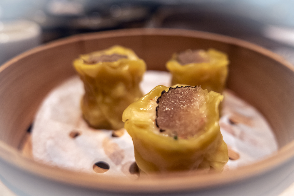 Хого — штука приятная и вкусная, но не очень-то сытная, если вы пришли, допустим, втроем. На этот случай в рамках бранча есть всякие приятные дополнения. Например, лапша с морепродуктами (990 р), жареная утка (3200 целиком, 1600 — половина) и димсамы четырех видов. Самые интересные — с креветкой и трюфелем. Их тут ласково называют кабриолетами за отсутствие «крыши» — они открытые, но зато сверху трюфельный слайс.
