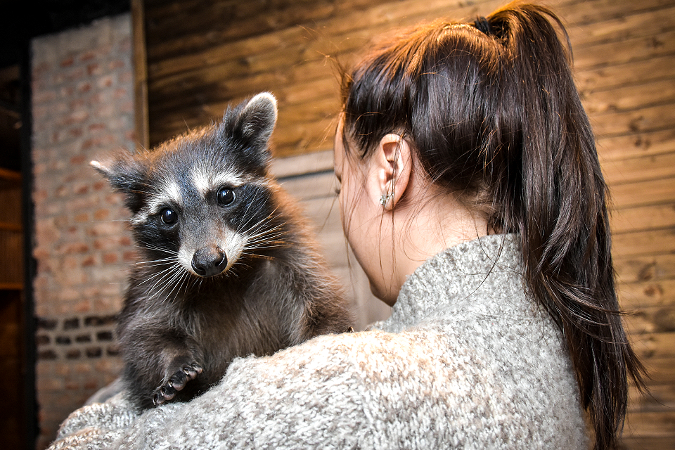 В антикафе можно пообщаться с любопытными енотами. Животные дружелюбны и всегда находятся под присмотром сотрудников. Каждый енот привит и даже имеет свой паспорт. Они очень любят трогать все лапками, поэтому рекомендуется надевать плотную и прочную одежду, ведь эти животные не умеют втягивать когти. В антикафе можно прийти с ребенком только старше 10 лет из-за непоседливости как енотов, так и маленьких детей.