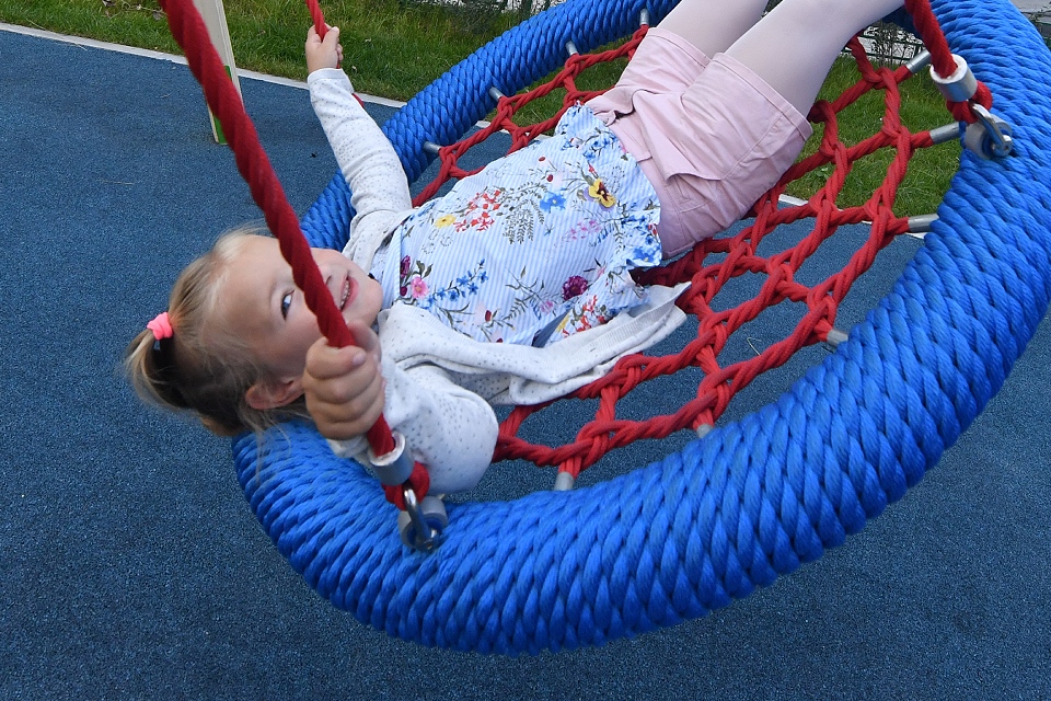 В распоряжении детей — 4 площадки, водный игровой комплекс, который помогает изучить простейшие законы физики, большая песочница и пешеходный фонтан. Зоны разделены по возрастам: малышам до 3-х лет доступна песочница, качели и пружинные качалки; ребят до 6 лет ждут горки, качели и карусель; а школьники от 6 до 12 лет могут освоить комплекс с лестницами, рукоходом и стеной для скалолазания. Работает комната матери и ребенка.