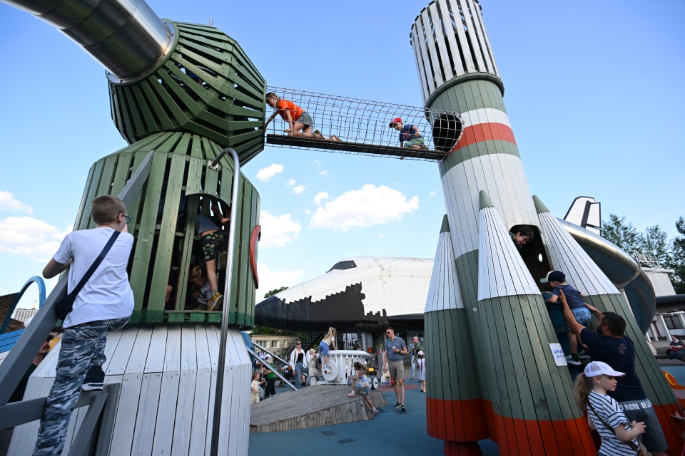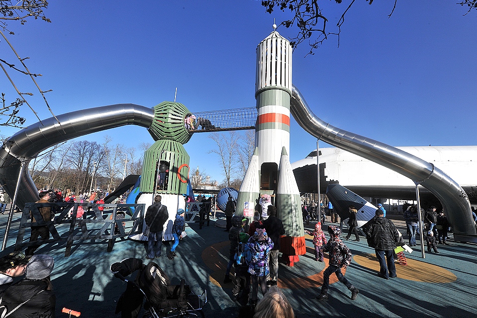 На площадке «Космос» на ВДНХ дети совместят приятное с полезным — поиграют и познакомятся с космической техникой и первыми животными-космонавтами. Горки и лазалки превращаются в корабли, ракеты, спутники и луноходы. В зоне «Солнечная система» можно изучить макеты планет, а на «Космическом корабле» — примерить на себя профессию космонавта. Игровой комплекс подходит для детей от 3 до 12 лет.