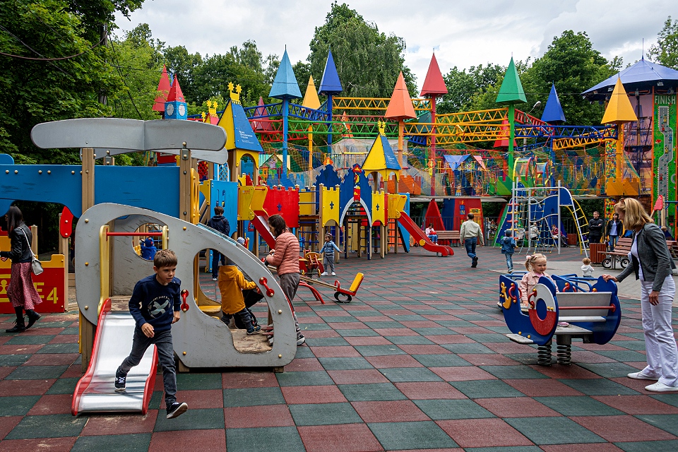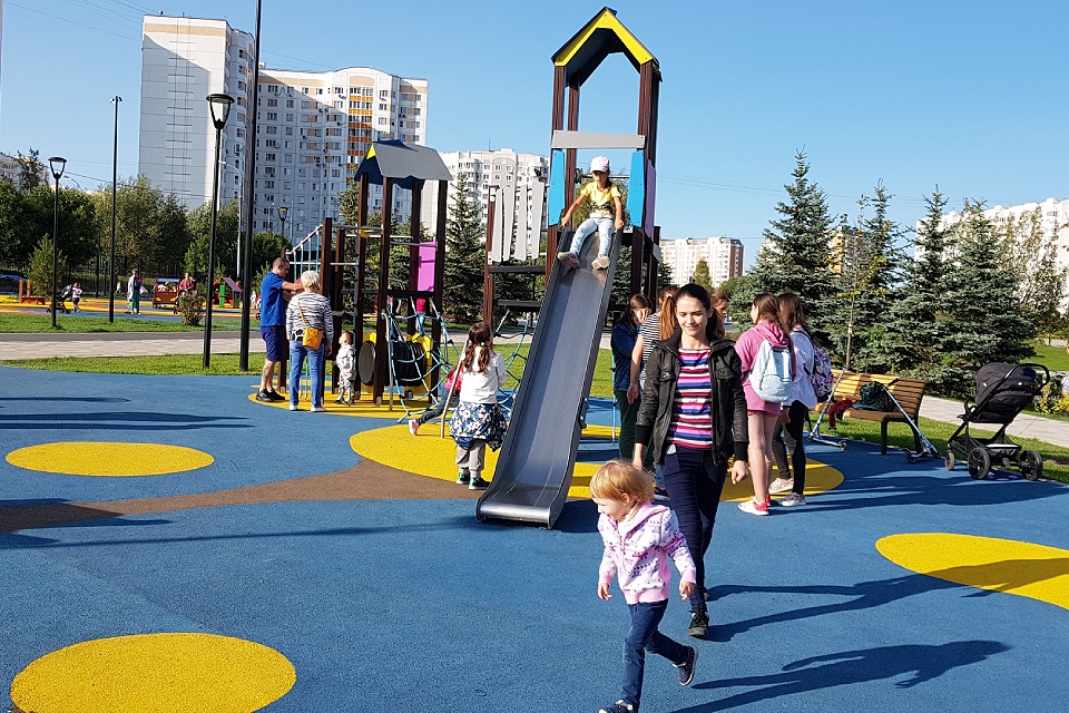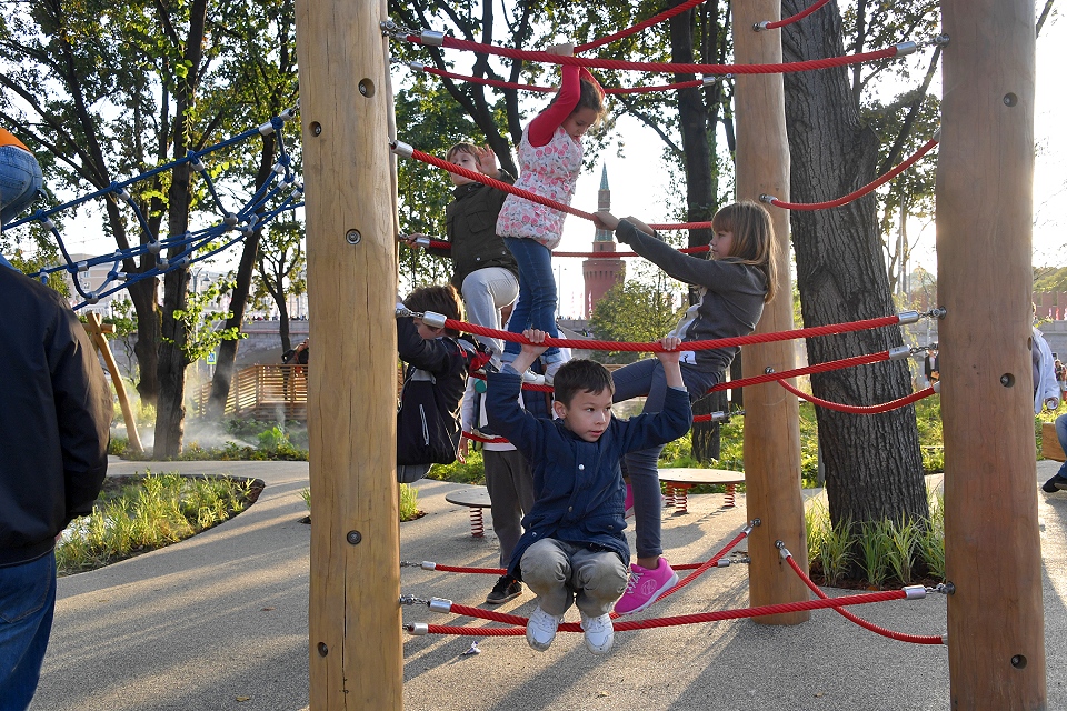 В Москве есть несколько крупных и многофункциональных детских площадок. Например, в Детском ландшафтном парке «Южное Бутово» 17 современных игровых зон с качелями, веревочными комплексами, горками и музыкальными площадками.