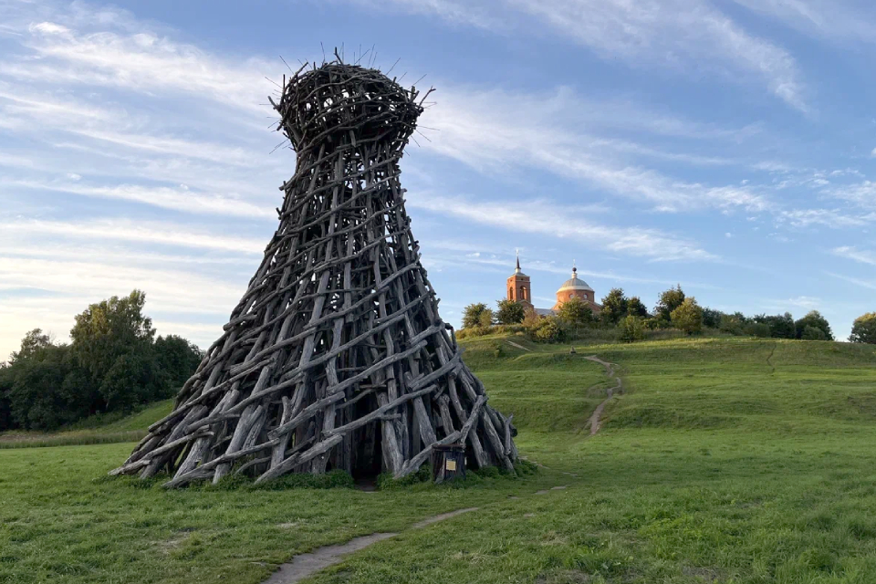 «Маяк», автор Николай Полисский. Фото: Мария Зарбалиева«Маяк», автор Николай Полисский. Фото: Мария ЗарбалиеваВид с вершины «Маяка» на церковь Троицы Живоначальной (1802 год). Фото: Мария ЗарбалиеваВид с вершины «Маяка» на реку Угру. Фото: Мария ЗарбалиеваПляж на реке Угре. Фото: Мария ЗарбалиеваПавильон «Русское идеальное», автор Сергей Кузнецов — главный архитектор Москвы. Фото: Мария Зарбалиева«Штурм неба», объект создан АБ MANIPULAZIONE INTERNAZIONALE. Фото: Мария Зарбалиева«Непроходимая чаща», авторы Василиса Прокопчук и Евгений Брагин. Фото: Мария Зарбалиева«Обитаемое вещество», авторы Дмитрий и Елена Каварга. Фото: Мария Зарбалиева«Ротонда», автор Александр Бродский. Фото: Мария Зарбалиева«Ротонда», автор Александр Бродский. Фото: Мария Зарбалиева«Ротонда» в вечерней подсветке. Фото: Мария Зарбалиева«Ротонда» в вечерней подсветке. Фото: Мария Зарбалиева«Позолоченный телец», автор Василий Щетинин. Фото: Мария Зарбалиева«Вилла ПО-2», автор Александр Бродский. Фото: Мария Зарбалиева«Вселенский разум», автор Николай Полисский. Фото: Мария Зарбалиева«Вселенский разум», автор Николай Полисский. Фото: Мария Зарбалиева