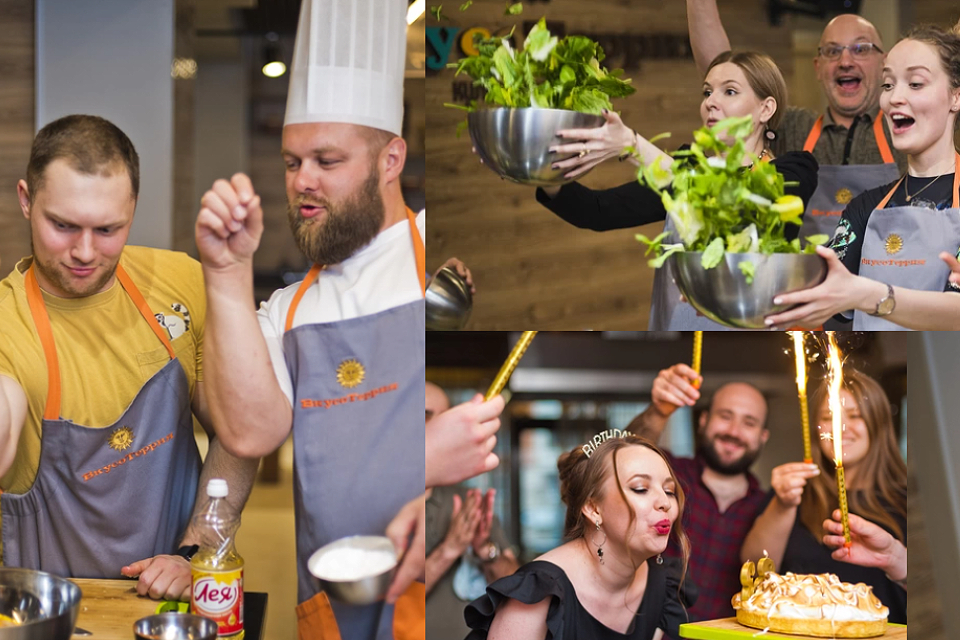 Особенность этой студии в том, что у них очень большой опыт: более 10 лет проводят мастер-классы. А еще имеется караоке, световое оборудование и место для танцев, если кому-то захочется продолжить праздник. С сервировкой стола помогают, а весь процесс приготовления займет не более двух часов.