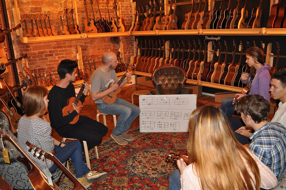 В магазине-мастерской «Гитарный клуб» на территории дизайн-завода «Флакон» представлено огромное количество инструментов на любой вкус и кошелек. «У нас нельзя купить недоведенный инструмент. Еще никто (из гитар) не покидал наши стены в сыром виде. И да, мы выдаем пожизненную гарантию на каждый инструмент», – говорят в «Гитарном клубе». Для тех, кто еще не умеет играть, но очень хочет, можно подобрать курсы игры на гитаре.