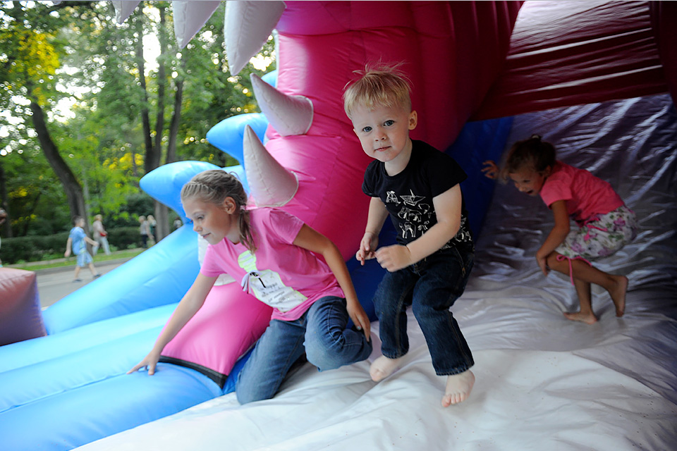 В парке в Мытищах (15 минут от станции «Тайнинская») более 20 видов развлечений. В распоряжении взрослых и детей – аттракционы «Египетская горка», «Пиратский корабль», цепочная карусель, а также тюбинговая горка, спортивные батуты, многоуровневые лабиринты с винтовыми горками и сетями.