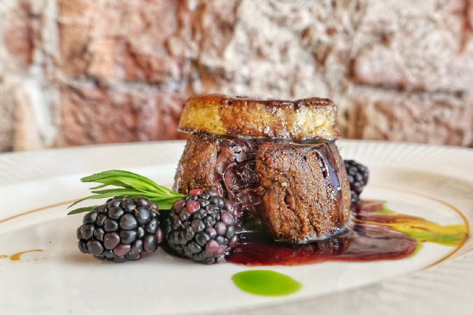 После чего сам Бог (согласно новейшим правилам Минпросвещения только так, только с большой буквы) велел добраться до стейка — филе-миньона с фуа гра, ежевикой и соусом порто. Плюс знаменитое пюре консистенции увлажняющей маски для лица.