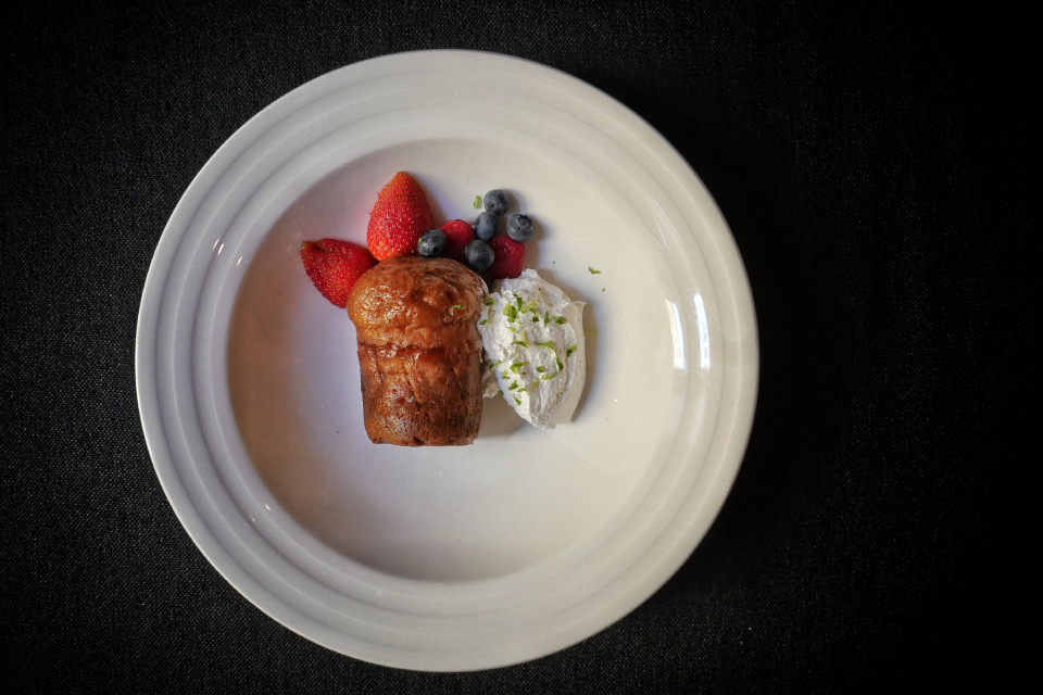 До десертов я обычно не доживаю, но тут случай особый — мескаль-баба. Да, это как ром-баба, но только с мескалем. И это очень вкусно. Не только из-за мескаля, но еще и потому что тесто идеально правильное — пористое, упругое. Давишь на него, а оно прямо-таки сочится сиропом с примесью этого самого мескаля. Хорошо.