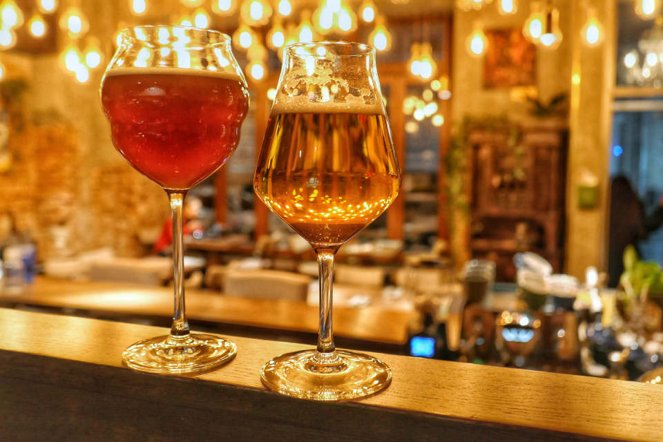Пока в Катаре народ на жаре без пива страдает, мы тут в Etudes всякими ламбиками балуемся (честно говоря, язык не поворачивается этот продукт пивом называть, ну уж ладно). Говорят, тут самая большая в Восточной Европе коллекция ламбиков. Сам не проверял, но похоже на правду — стеллажи с бутылками именно на такие мысли наводят. Тут и классика из Фландрии, и ламбикоподобные напитки из других стран (в том числе из России) — просто они по закону не могут ламбиками называться. В нижнем зале на стенах портреты Луи Пастера и обложки его штудий (Etudes) о пиве. Серьезный был ученый.