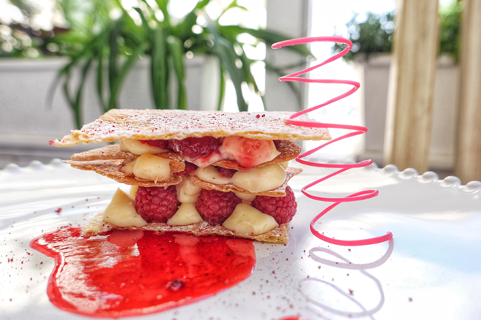 Буррата-мама — сугубо инстаграмный аттракцион: разрезаешь ее, а внутри мелкие шарики моцареллы. Такой трюк любят в некоторых грузинских ресторанах проделывать с хинкали. Про костолетту миланезе я, как чувствовал, специально спросил — большая? Мне говорят — да нет, не очень и показали руками что-то неопределенное. А потом принесли отличнейшую отбивную в панировке, но размером чуть меньше стола. Да, лимонный сорбет к ней очень кстати. Из паст надо похвалить баттоли с креветками — широкую лапшу из пшенично-каштановой муки. Из десертов самый красивый — крак с малиной. Это как мильфей, но хрустит. И ягод больше.
